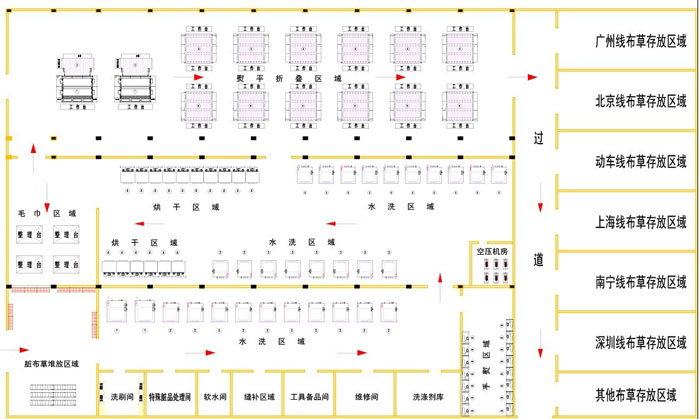 此方案是屬于布草量很大的洗衣廠方案設(shè)計(jì),突出經(jīng)濟(jì)實(shí)用,靈活機(jī)動(dòng)的特點(diǎn)。